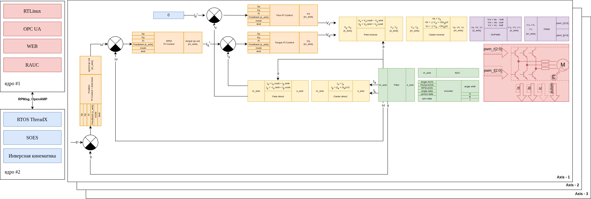 Система построена на гетерогенной архитектуре с разделением задач по уровням реального времени: